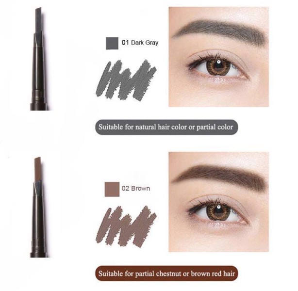 MS Cosmetics Eyebrow memiliki dua varian warna, yaitu Dark Brown dan Dark Gray. Dengan mata pencil 2 sisi yang berbeda, sehingga memudahkan pemakaian untuk daerah ujung alis dan daerah dalam alis.