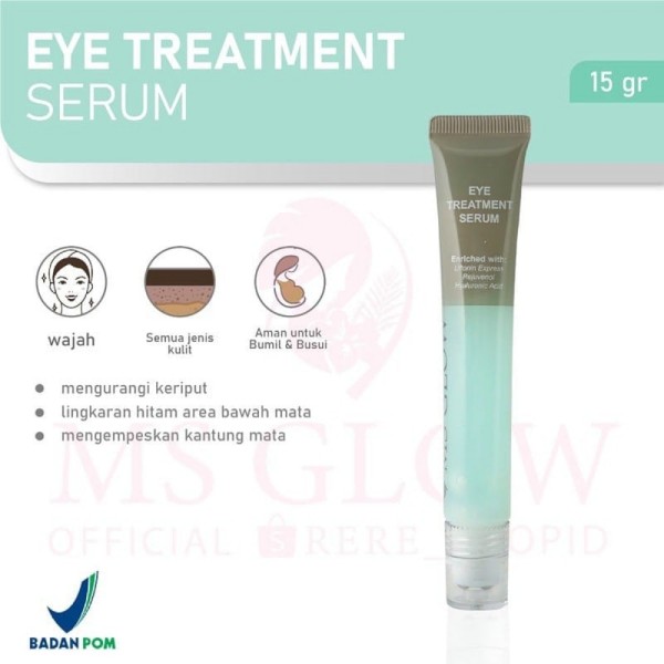 Eye Treatment Serum MS Glow diformulasikan untuk menutrisi lingkaran mata yang dapat melembabkan kulit sekitar mata, mengurangi keriput dan lingkaran hitam, serta mengempeskan kantung mata.