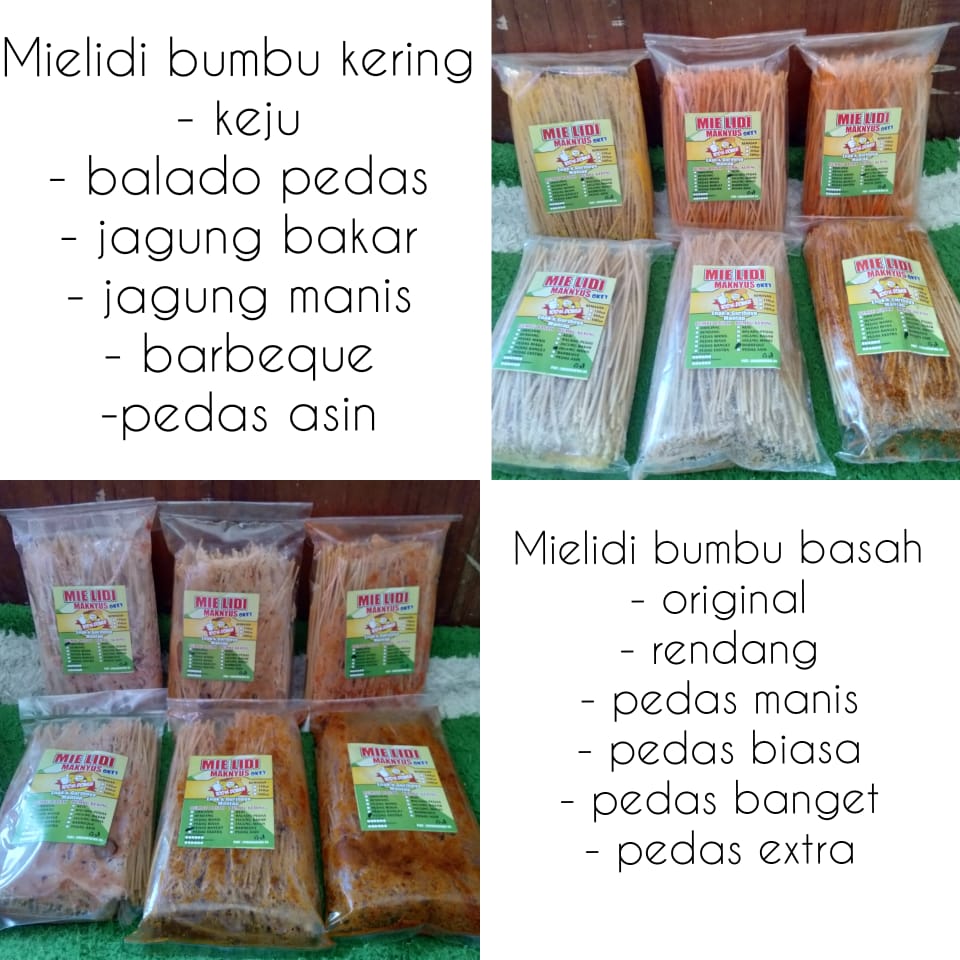 Mielidi maknyus tersedia 2 varian : bumbu basah & bumbu kering dengan rasa sesuai yang ada pada gambar.