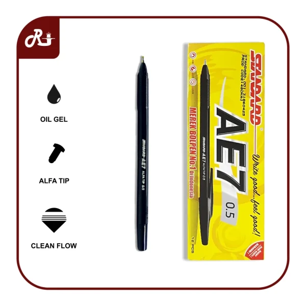 Standard AE7 0.5 mm Alfa Tip Pen Harga adalah harga per 1 lusin (12 buah) Tersedia dalam warna hitam (1 lusin per warna)